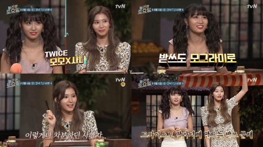 뿐만 아니라 이날 녹화 현장에서 모모와 사나는 노래 가사를 두고 서로 다른 주장을 펼쳐 흥미진진함을 안겼다. 멤버들이 둘의 의견 충돌로 인해 모모파와 사나파로 갈라서는 등 그동안 보지 못했던 장면들이 펼쳐졌다는 후문. 모모와 사나의 발랄한 매력과 의외의 받아쓰기 실력은 내일(4일, 토) 방송하는 '놀라운 토요일'에서 모두 확인할 수 있다.