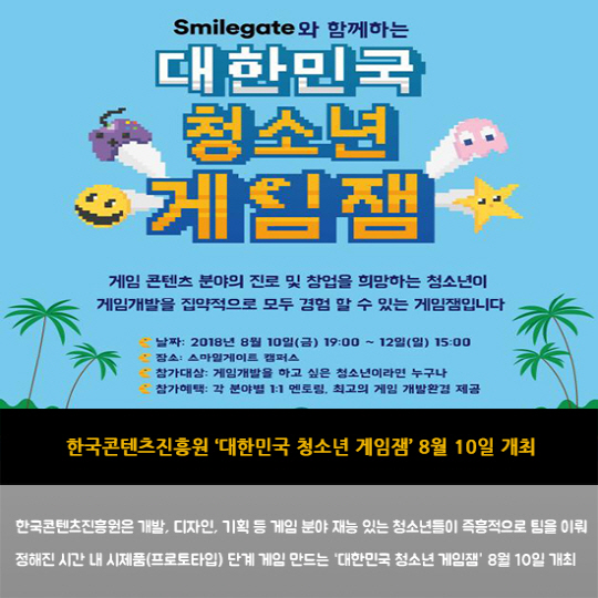 - 한국콘텐츠진흥원 '대한민국 청소년 게임잼' 8월 10일 개최