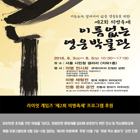 - 라이엇 게임즈 '제2회 의병축제' 프로그램 후원
