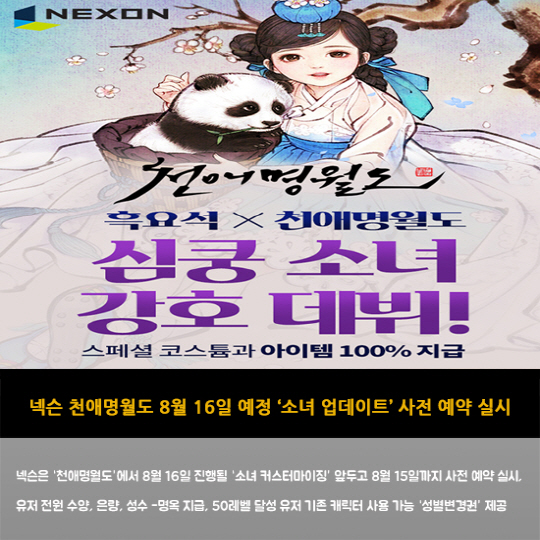 - 넥슨 천애명월도 8월 16일 예정 '소녀 업데이트' 사전 예약 실시