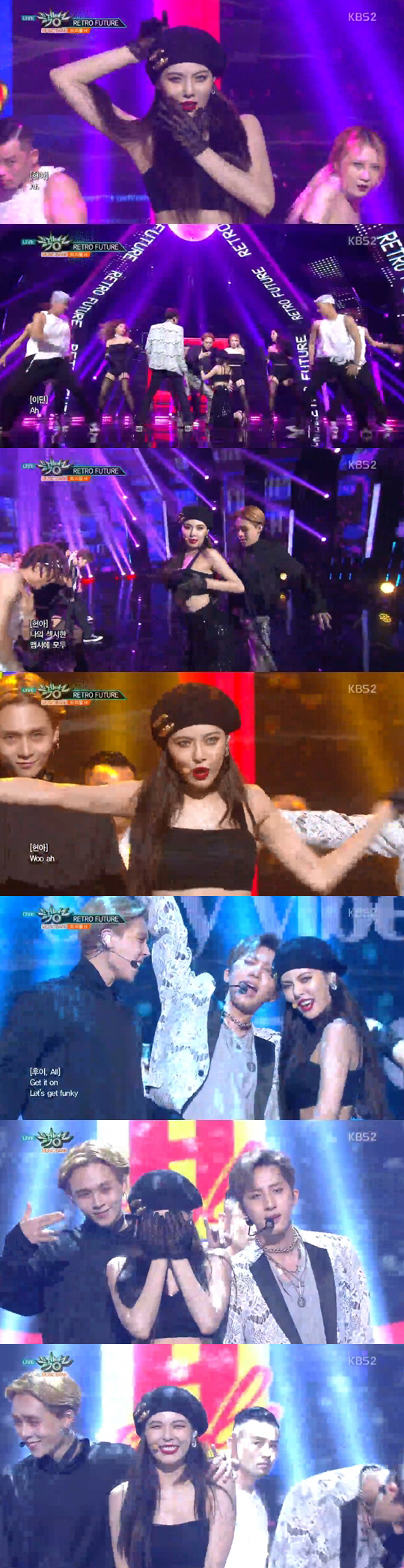 이전과 다를 바 없이 무대에서 카리스마 넘치는 퍼포먼스를 펼치던 현아는 자신의 파트를 끝내고 자리로 돌아가던 중 넘어지는 실수를 저질렀다. 현아가 바로 일어나지 못하자 옆에 서 있던 이던은 즉시 현아를 일으켜 세웠고, 이 모습은 그대로 화면에 포착됐다.