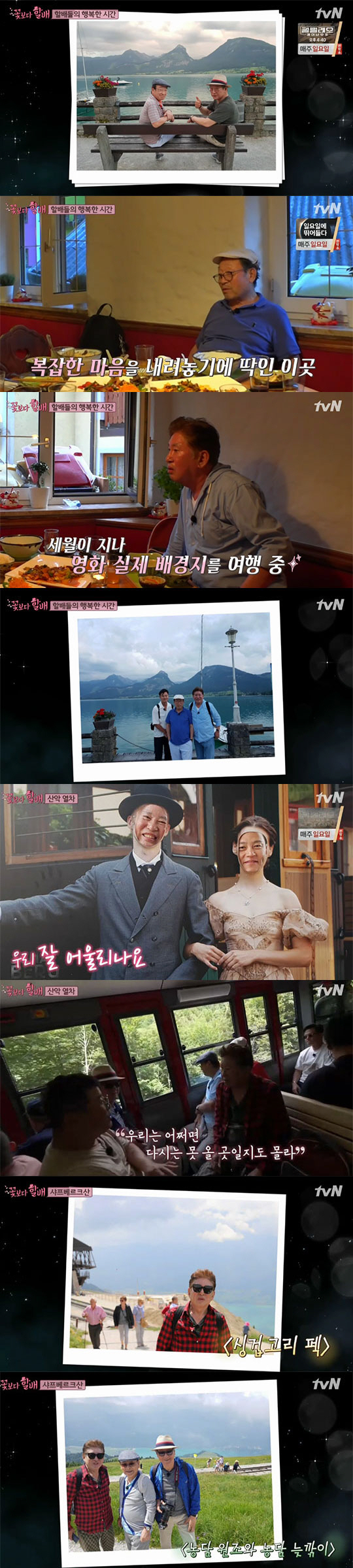 3일 tvN '꽃보다할배:리턴즈'에서는 체코에서 오스트리아로 이동, '사운드오브뮤직'의 무대를 찾은 '꽃할배(이순재 신구 박근형 백일섭 김용건)' 5인방의 모습이 방송됐다.