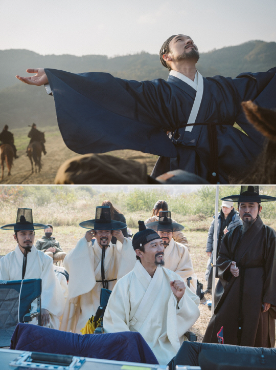 또한, 몰락한 왕족 흥선 역의 지성은 감정의 진폭이 가장 큰 캐릭터를 연기했음에도 촬영장에서 늘 밝은 모습을 잃지 않으며 훈훈함을 전한다. 지성은 동료들과 즐겁게 대화하다가도 촬영에 들어가면 단숨에 흥선으로 변신하는 남다른 몰입력으로 모두를 놀라게 했다. 이어 땅을 둘러싸고 첨예한 대립을 벌이는 세도가의 냉혈한 야망가 김병기 역의 김성균, 베일에 싸인 기생 초원 역의 문채원, 권력을 빼앗긴 왕 헌종 역의 이원근은 영화 속 모습과 달리 촬영 현장에서는 박희곤 감독과 동료 배우, 스태프들과 함께 활기 넘치는 모습으로 훈훈함을 더한다.