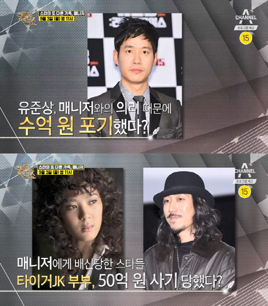 한편 믿는 매니저에게 발등을 찍힌 스타들도 있다. 최근 가수 손담비가 전 매니저에게 도난을 당한 사연을 공개해 화제가 된 바 있다. 가수 윤미래-타이거JK 부부도 믿었던 매니저에게 무려 50억 원의 사기를 당한 사실을 밝혔다. 스타와 매니저의 훈훈한 스토리부터 서로의 의리를 저버린 그들에 대한 자세한 이야기는 3일 월요일 밤 11시 채널A '풍문으로 들었쇼'에서 확인할 수 있다.