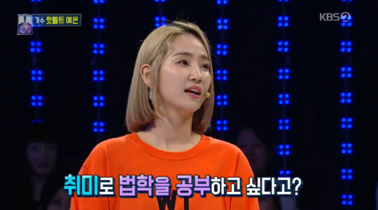 이에 MC가 "취미로 법학을 공부한다는 말을 들었다"고 질문하자 예은은 "대학 준비를 할 때 법학과에 수시를 넣었는데 면접에서 탈락했다. 그 뒤에 '변호인'이라는 영화를 감명 깊게 봐서 사소한 법률 지식이라도 가지고 있으면 도움이 될 것 같아서 조금씩 해보려고 하고 있다"고 설명했다.
