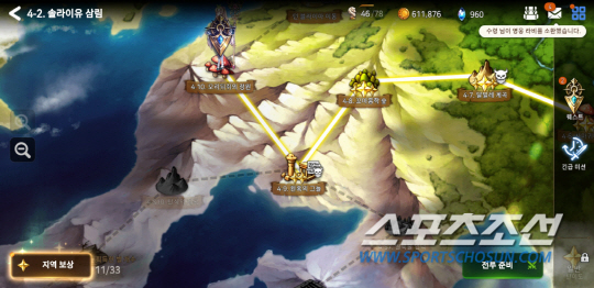 스마일게이트의 이 같은 방향성은 게임 내 고스란히 녹아들었다. 우선 에픽세븐의 맵을 보면, 일반 수집형 RPG와 달리 선택지가 존재한다. 어떤 길을 선택하느냐에 따라 등장하는 몬스터가 달라지고, 추가적으로 열리는 지역의 순서가 변경된다.