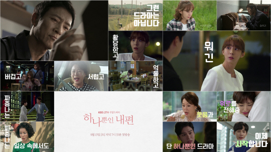 KBS 2TV 새 주말드라마 '하나뿐인 내편(극본 김사경, 연출 홍석구, 제작 DK E&M)'이 본방사수 욕구를 급상승시킬 2차 티저 영상을 전격 공개했다.