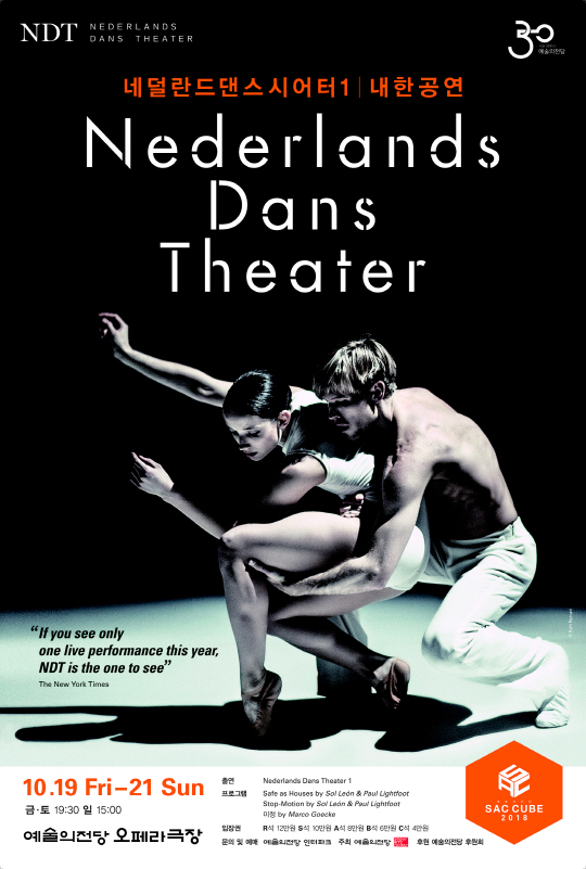 세계 최고 현대 무용단으로 불리는 네덜란드 댄스시어터1(NDT1)가 16년 만에 내한공연을 펼친다. 오는 10월 19일(금)부터 21일(일)까지 예술의전당 오페라극장.