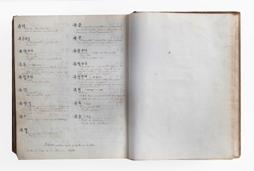 사전 가운데 사료가 가치가 높은 유물은 붉은색 표식을 했는데, 그중에서도 한불자전 필사본이 귀중본으로 꼽힌다. 프랑스 선교사가 쓴 이 책은 한국어 대역사전의 효시로 평가되는 한불자전(1880)의 원형이다.