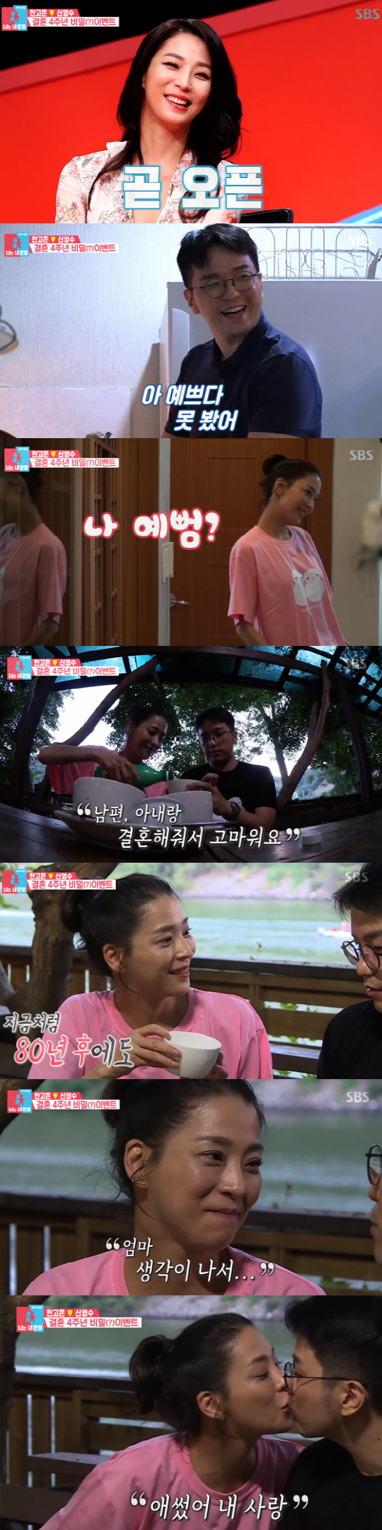 신영수가 음식을 준비하는 동안 한고은은 커플티를 준비, 이후 둘만의 4주년 파티가 진행됐다.