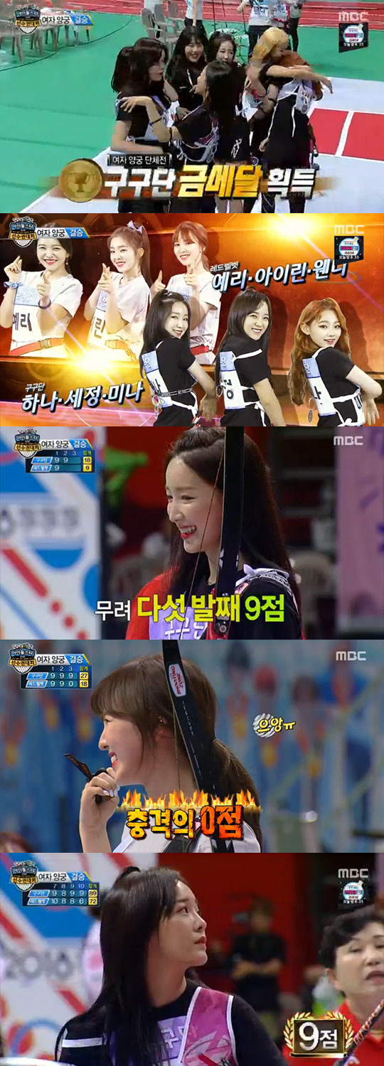 구구단 세정은 에이스답게 침착하게 9점-8점-9점-9점을 쏘며 팀의 금메달을 이끌었다. 아이린은 중앙의 카메라 렌즈를 깨는 '퍼펙트 골드'를 기록, 모든 출연자에게 치킨을 선물했지만 승부를 뒤집지는 못했다. 최종 88-74로 구구단이 우승했다.