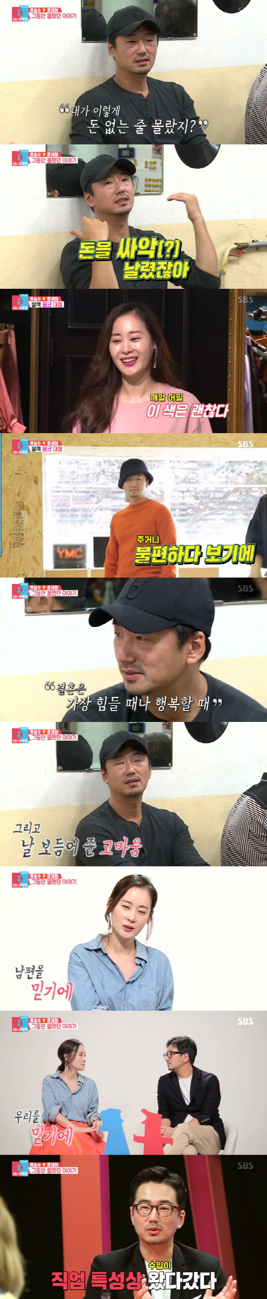 또한 류승수는 "연예인이다 보니 돈도 많겠구나라고 생각할 수 있다. 그러나 '내가 이렇게 돈이 없는 줄 몰랐지?'라고 했더니 당신이 '돈 없어도 되니까 하고 싶은 일 해'라고 했다"며 고마움을 표현했다. "돈을 준 적도 있지만 생활비를 정기적으로 주질 못했다. 그런 압박감을 안 줘서 고맙다"고 덧붙였다.