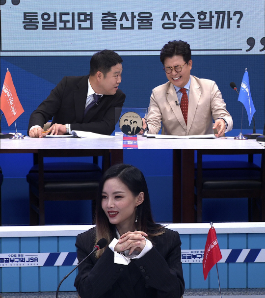 2일 밤 10시 태광그룹 티캐스트 E채널에서 방송되는 '수다로 통일 -공동공부구역JSA'에서는 '통일되면 출산율 상승할까'라는 안건을 놓고 남측회원 5인과, 북측회원 5인이 의견을 나눈다.