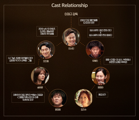 '픽'의 인연을 가진 배우들도 있다. 한국 장르 드라마의 대가로 꼽히는 김은희 작가의 대표작 [시그널]의 조진웅, [유령]의 송하윤은 이번 영화로 만나 김은희 작가를 사로잡은 연기의 결을 보여주게 되었다. 여기에 시대를 풍미한 명대사 "아프냐, 나도 아프다"를 낳은 드라마 [다모]로 연을 맺은 '폐인 양성 대가' 이재규 감독과 배우 이서진의 재회 역시 눈길을 끄는 포인트다.