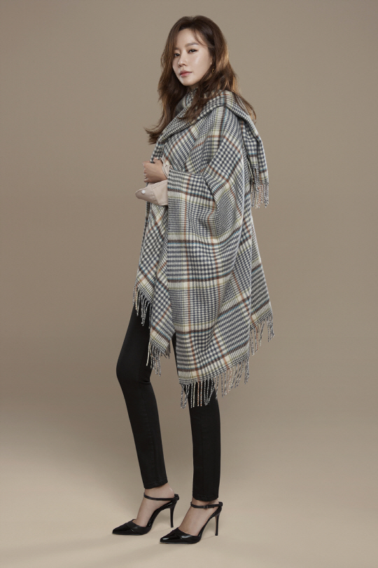 이번 화보 속 김아중은 가을, 겨울 시즌 스타일리시한 룩을 완성해줄 다양한 아이템을 선보이며 패셔니스타다운 면모를 드러냈다. 스키니진에 체크 무늬의 망토코트를 무심히 둘러주었고, FW시즌의 머스트 해브 아이템인 울 원피스는 벨트와 함께 포멀하게 완성했다. 또한 판초 니트 풀 오버는 패턴감이 강한 하의와 매치하여 패셔너블한 감각을 더했다. 윈터 아우터로는 이태리 폭스 퍼 트리밍코트를 활용한 고급스러운 스타일링을 제안하기도 했다.