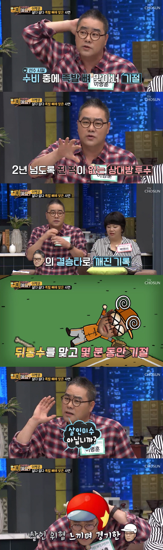 이병훈이 과거 야구 선수 시절 경기장에서 족발 뼈를 맞고 기절한 적이 있다고 털어놨다.
