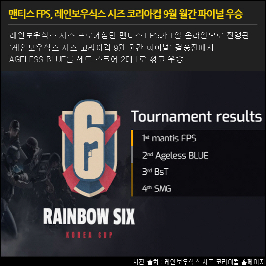 - 맨티스 FPS, 레인보우식스 시즈 코리아컵 9월 월간 파이널 우승
