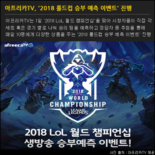 - 아프리카TV, '2018 롤드컵 승부 예측 이벤트' 진행