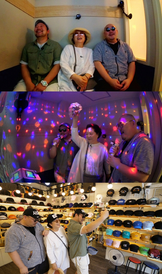 이날 양희경과 두 아들은 젊은이들의 핫플레이스 '홍대 거리' 나들이에 나섰다. 작은 자동차에 옹기종기 모여 타는 것부터 난관이었던 세 모자는 특유의 긍정적이고 즐거운 마인드로 시종일관 웃음을 잃지 않았다. 그렇게 홍대 이곳 저곳을 누비던 삼덩이 모자가 도착한 곳이 코인노래방이다.