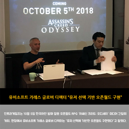 인트라게임즈는 10월 5일 한국어판 발매 앞둔 오픈월드 RPG '어쌔신 크리드: 오디세이' 미디어 간담회 개최, 현장에서 유비소프트 가레스 글로버 디렉터는 "유저 선택에 기반한 오픈월드 구현했다"고 말했다.