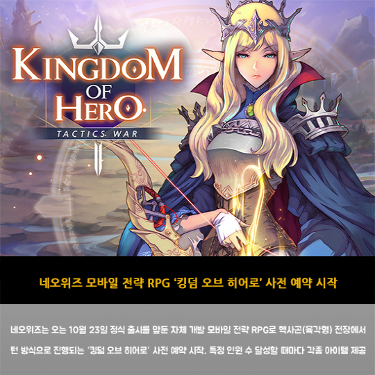 - 네오위즈 모바일 전략 RPG '킹덤 오브 히어로' 사전 예약 시작