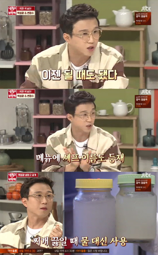 자취 경력 12년차, 취사병 출신인 박성광은 요리에 대한 관심이 높다. 현재 포차의 메인 메뉴인 '깐풍기'에 대해서도 "깐풍기 맛집을 찾아가 사례를 하고 레시피를 받아와 연구한 끝에 만들었다"라고 말해 셰프들의 놀라움을 안겼다. 그러면서 "승리한 요리를 가게 메뉴판에 셰프의 이름을 넣어 올릴 생각까지 있다"고 말해 셰프들을 긴장케 했다.공개된 박성광의 냉장고 속에는 살림 전문가의 위엄이 느껴지는 다양한 식재료가 등장했다. 특히 냉장고 속에서 '쌀뜨물'이 발견되자 박성광은 "찌개 만들 때 육수로 사용하면 감칠맛이 난다. 설거지 할 땐 기름기 제거에도 탁월하다"라며 본인의 살림 팁을 전했다. 또한 신선한 보관을 위해 옷걸이에 걸어둔 바나나까지 공개해 모두를 놀라게 했다. 셰프들은 "대부분 정보프로그램에서 본 것들이다", "주부 살림 솜씨다"라고 평가했다.
