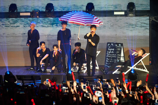 팬들은 아이콘의 히트곡 '사랑을 했다', '취향저격'이 흘러나오자 떼창으로 하나가 되었다.