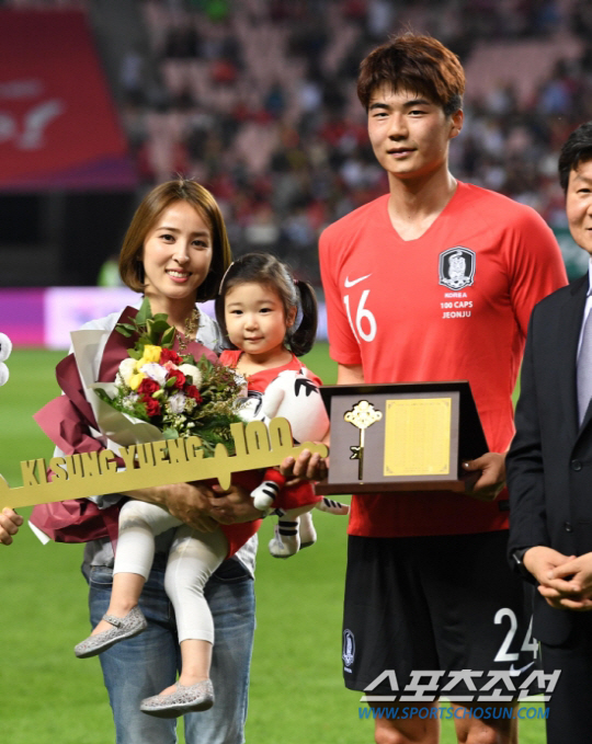 사진에는 인터뷰 중인 아빠 기성용의 뒤에서 은밀하게(?) 힙업을 시켜주는 딸 시온 양의 장난기 가득한 모습이 담겨 있다. 또 다른 사진에는 경기가 끝난 후 텅 빈 축구장에서 함께 노는 다정한 부녀의 모습이 담겨 있어 훈훈함을 자아낸다.