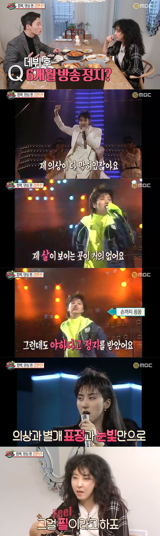이어 김완선은 '데뷔 직후 6개월 동안 출연정지를 당했다던데'라는 질문에 "영상을 보다시피 제 의상은 다 막혀있다. 살이 보이는 곳이 거의 없다"면서 "그런데도 야하다고 출연 정지를 받았다. 표정이나 눈빛이 야하다고"라며 당시를 회상했다. 이어 김완선은 "그걸 필이라고 하죠"라며 자부심을 보였다.