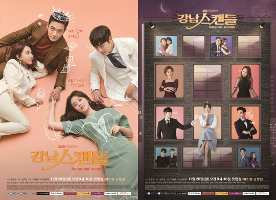 26일 SBS 새 아침드라마 '강남 스캔들'(극본 박혜련/연출 윤류해)이 첫 방송된다. '강남 스캔들'은 신선한 뉴페이스와 명품 배우들의 조합, 아침을 설레게 만들 색다른 로맨스를 예고하며 관심을 모은다. 이에 '강남 스캔들' 측은 11월 22일 포스터 2종을 전격 공개, 이목을 집중시켰다.
