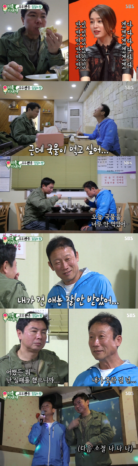 이때 정석용은 "낮에 부침개 먹었더니 느끼하다"고 말했고, 임원희는 "느끼하진 않다. 맛있다. 그런데 국물이 먹고 싶다"고 말해 폭소케 했다.