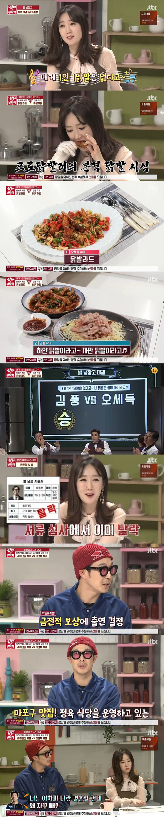 첫 번째 대결은 오세득과 김풍이 맞붙었다. 오세득은 라조기 스타일의 닭발튀김 요리인 '닭발라드'를, 김풍은 마늘과 콜라가 들어간 닭발 요리인 '하얀 닭발이라고~ 까만 닭발이라고'를 만들었다. 승자는 김풍. 별은 "전혀 거부감 없는 맛이다. 하얀 닭발이 반전이 있었다. 예상하지 못한 맛이 튀어나왔다"고 치켜세웠다.