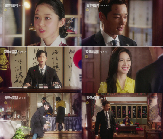 여기서는 이혁(신성록 분)이 언론과 긴급기자회견을 자청, 국민들을 향해 사죄하면서 시작된다. 하지만, 고개를 숙인 그의 입가에는 알듯 모를듯한 미소가 엿보이더니 이내 유라와 다시 한 번 밀회를 즐기며 "민유라를 황후의 자리에 앉히겠습니다"라고 선언했다.