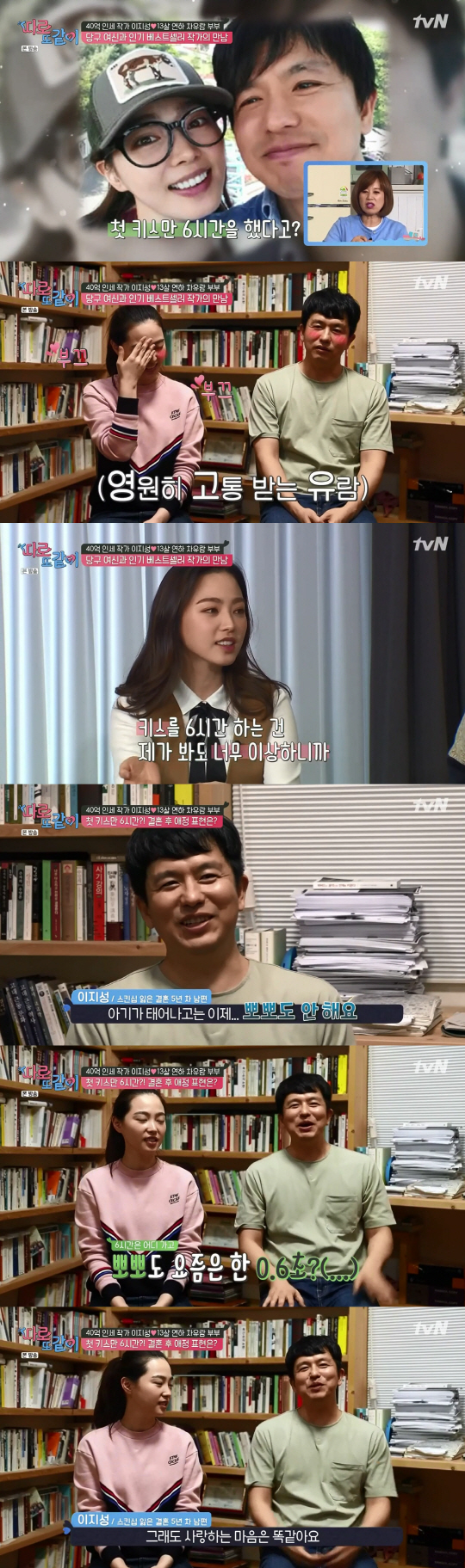 이지성은 "차유람과 첫 키스만 6시간을 했다"고 말하자 이에 차유람은 민망해 하며 "변명을 하자면 결혼하기 전에 제가 모태솔로였다. 결혼 후에 하니까 그걸 풀려고..."라고 설명했다. 이지성은 차유람의 폭탄 발언에 "당신 왜 그래. 우리 둘만의 이야기다"고 당황해 하며 웃었다.