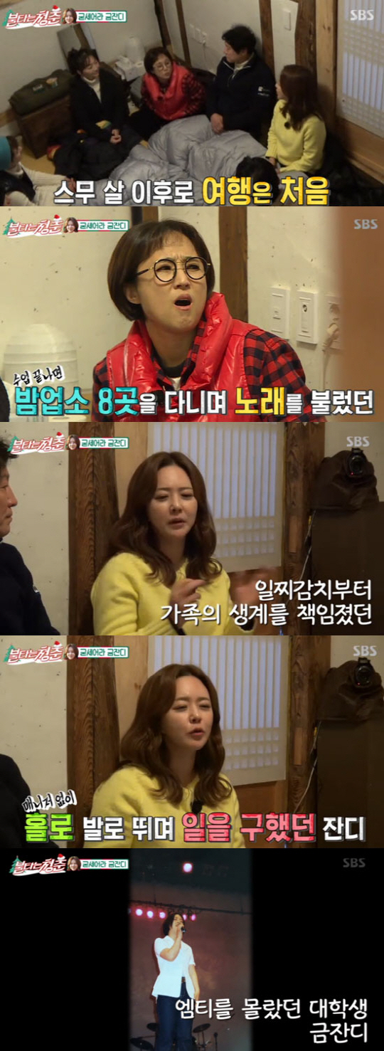 금잔디는 "당시 매니저 없이 하루에 7~8개의 밤 행사를 뛰었다"며 "업소에 연예부장님을 찾아가면 노래할 수 있다고 해서 직접 가서 물어보고 노래를 불렀다"고 말했다.