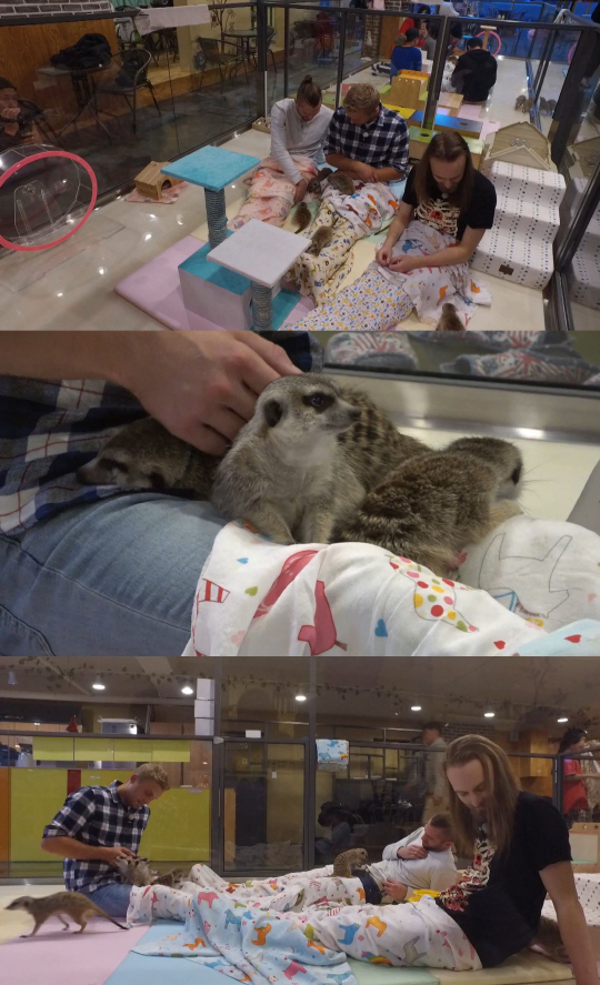 한편, 미어캣 카페에 입장한 스웨덴 친구들은 세상 따뜻한 엄마 미소를 지으며 미어캣에서 눈을 떼지 못했다. 이내 직접 미어캣을 만져본 친구들은 "내 무릎에 미어캣새끼가 앉아 있을 거라고는 생각도 못 했어", "내가 본 것 중에 제일 귀여워", "정말 예쁜 동물이야"라고 말하며 미어캣의 사랑스러움에 홀딱 빠져버린 모습을 보였다. 미어캣과 함께 행복한 피카를 즐긴 스웨덴 3인방은 "스웨덴에서는 동물과 함께 카페에 있을 수 없어"라고 말하며 처음 방문한 미어캣 카페에 큰 만족감을 드러냈다.