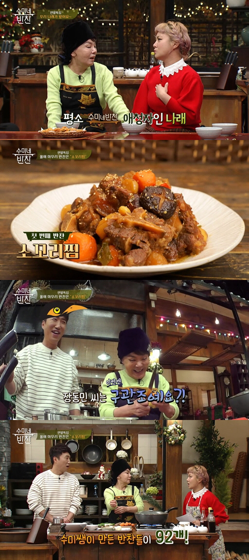 또한 '수미네 반찬' 에서 작은 연말 파티가 열린다. 파티의 여왕 박나래와 셰프들은 각자의 시그니처 파티 음식을 준비, 각종 소품까지 착용하며 행복한 시간을 즐겼고, 덕담까지 주고받으며 훈훈한 분위기를 연출하기도.