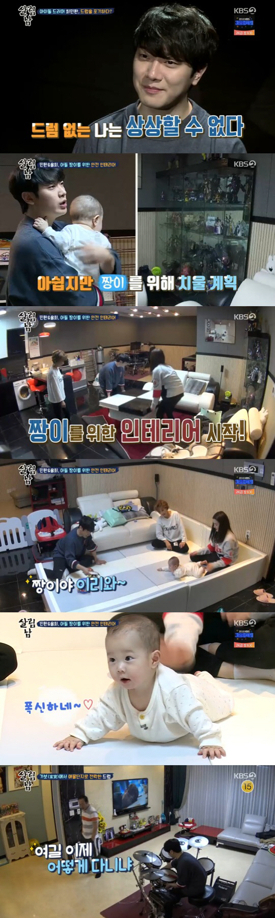 하루가 다르게 활동범위가 넓어지는 어린 아들 재율에게 협탁과 피규어로 가득찬 유리 장식장 등 위험한 물건들이 많다고 판단한 민환 부부는 아이를 위해 집 전체를 새단장 하기로 했다. 피규어는 물론 쇼파에 테이블까지 모든 물건을 정리한 민환은 아들을 위해 바뀐 인테리어를 보며 뿌듯해했다.