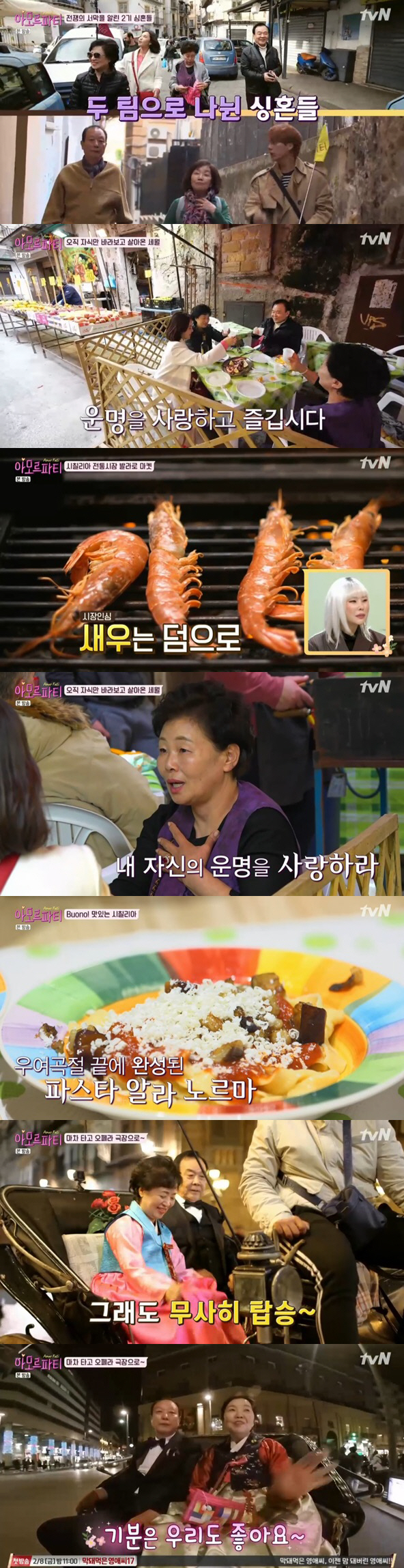 전통시장 팀은 시칠리아 전통시장 발라로 마켓에서 구경도 하고 다양한 먹거리를 즐겼다. 싱혼들은 테라스에서 즉석 해산물 구이를 먹으며, 그간 자식들을 키우느라 여행 한번 편하게 못 다녔던 지난 날들을 회고해 뭉클함을 자아냈다.