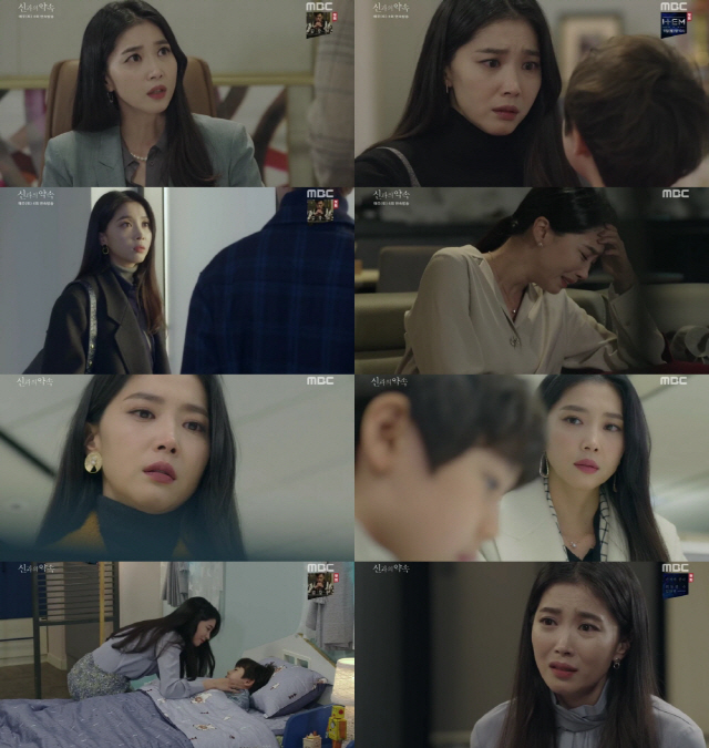 2일 방송된 '신과의 약속'에서는 아들 준서(남기원 분)가 현우(왕현석 분)와 형제인 것을 알게 되고 준서의 골수를 현우에게 이식하기 위해 준비하는 우나경(오윤아 분)의 이야기가 그려졌다.