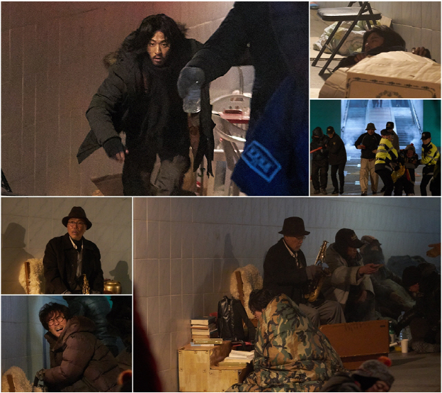 이와 관련 주진모, 송경철, 오광록이 다른 노숙자들과 함께 허겁지겁 도주하는 모습이 공개돼 시선을 모으고 있다. 극중 홈리스들의 보금자리인 지하도에 갑작스레 경찰이 들이닥치자 현장에 있던 노숙자들이 단숨에 도망을 치는 장면. 커다란 박스를 방패삼아 추위를 피해 잠을 자고 있는 한석주, 자신의 색소폰을 애지중지 닦는 두철, 그 옆에서 담요를 덮고 책을 읽는 고박사 등 서울역 지하도의 평화로운 일상이 펼쳐지던 와중에 누군가 단속이 떴음을 알리면서, 3인방을 비롯해 노숙인들이 부랴부랴 짐을 챙겨 사생결단 도주를 감행한다.