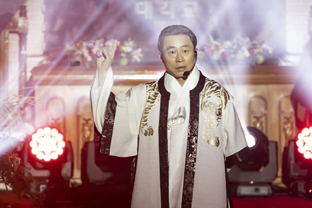 공개된 사진 속 이문식은 올백으로 넘긴 헤어 스타일과 청렴함을 나타내는 순백의 한복에 어두운 금빛 문양으로 무게감을 더해 대각교 교주로서의 아우라를 발산하고 있다. 여기에 대각교 교주 기용문으로서 빠져들 수밖에 없는 오묘한 눈빛과 절제 있는 손길이 존재만으로도 범접할 수 없는 분위기를 자아내고 있다.