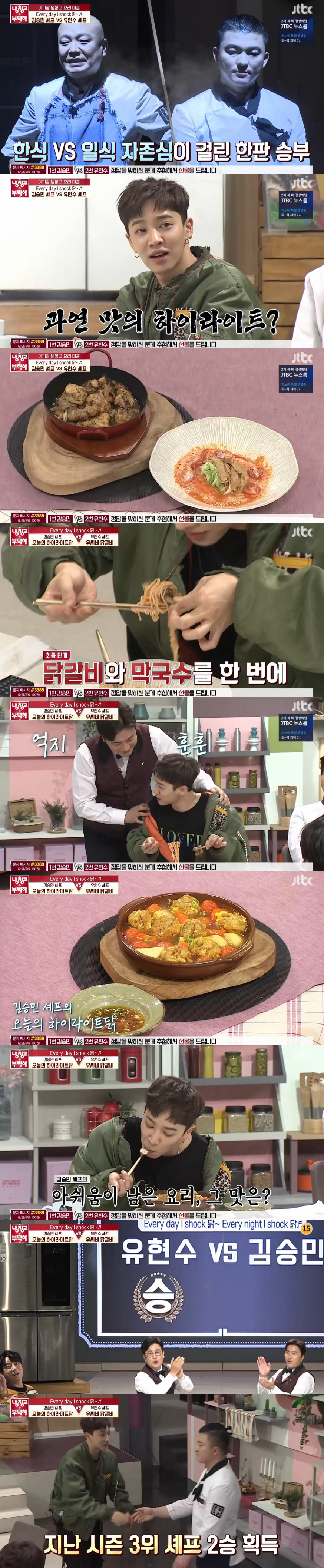 김승민은 농도가 높은 일본식 나베 요리를 요리했다. 오렌지 폰즈 소스에 퐁당 찍어 먹었다. "일식 요리 좋아해서 많이 먹어봤다. 먹어본 듯 먹어보지 않은 맛"이라며 "말을 하지 않으면 고기가 닭인지 모를 것 같다"고 평했다.