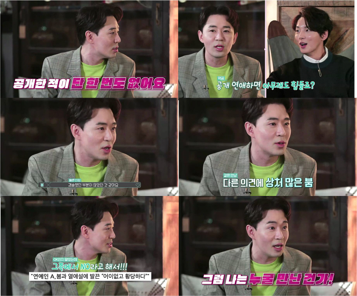 붐은 "경솔했던 부분들이 많이 있었다. 나는 만난다고 했는데 상대방이 아니라고 한 적도 있고…"라고 말끝을 흐리며 쓴 웃음을 지어 보였다. "나는 OK라고 했는데 상대방은 NO라고 했을 때 세상 창피했다"라며 열애설 당시 엇갈린 입장에 대해 솔직한 마음을 털어놨다.