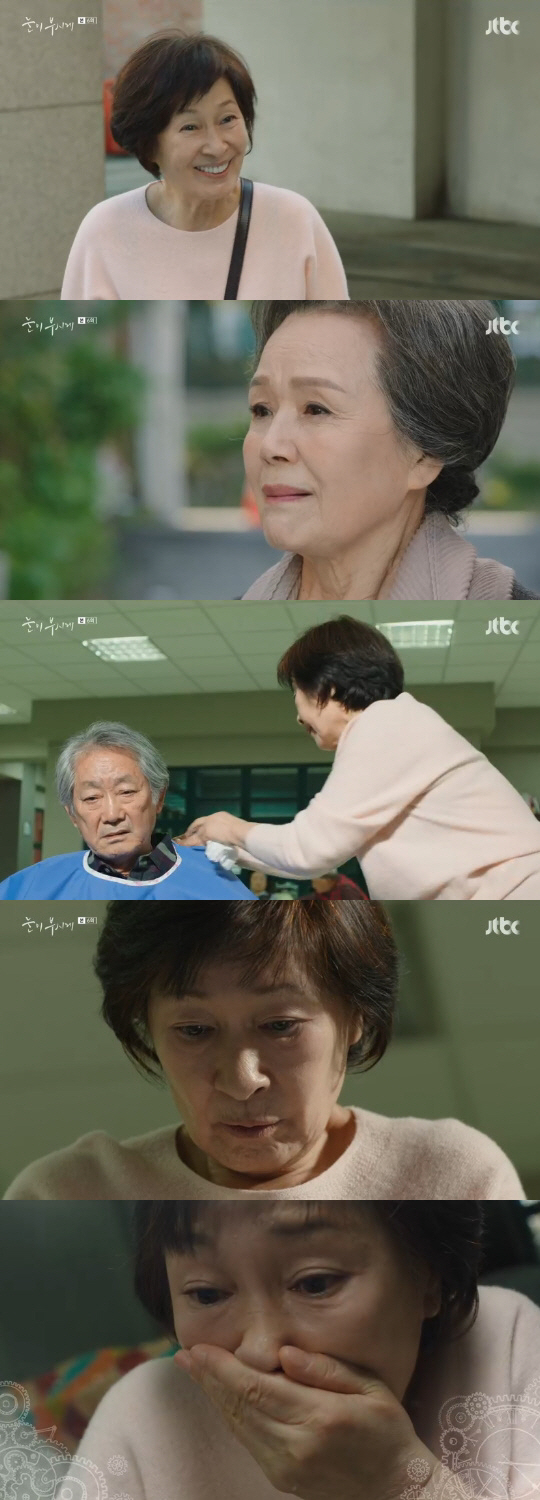 혜자는 "준하야 내가 돌아가도 너 나 잊어버리면 안 돼. 난 여기 이 기억으로만 사는데 네가 나 잊어버리면 나 너무 속상할 거 같다"며 눈물을 쏟았다. 이어 "나 할머니 됐어. 웃기지? 나도 웃기다. 나 이 꿈에서 깨면 다시 할머니로 돌아갈 거야. 미안해 준하야. 미안해"라고 말했다.