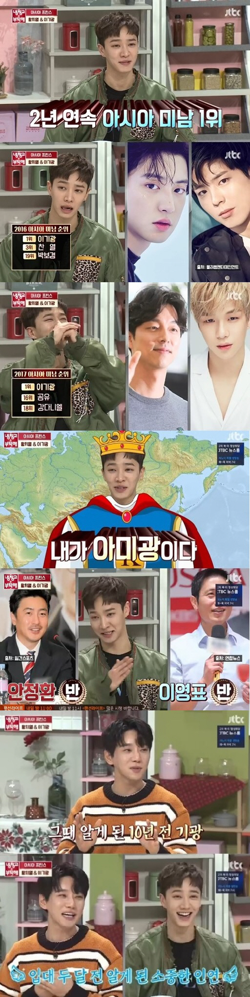 이날 MC 김성주는 이기광이 한 홍콩 패션 매거진에서 선정한 '아시아 미남 1위'에 2016년과 2017년에 2년 연속 선정됐다는 소식을 언급했다. 2016년에는 1위 이기광 밑으로 3위 엑소 찬열, 19위 박보검, 37위 윤두준이 있었고 2017년에는 16위 공유, 18일 워너원 강다니엘이 랭크됐다. 김성주가 이 순위를 읊자 이기광은 쑥스러운 듯 고개를 들지 못했다.