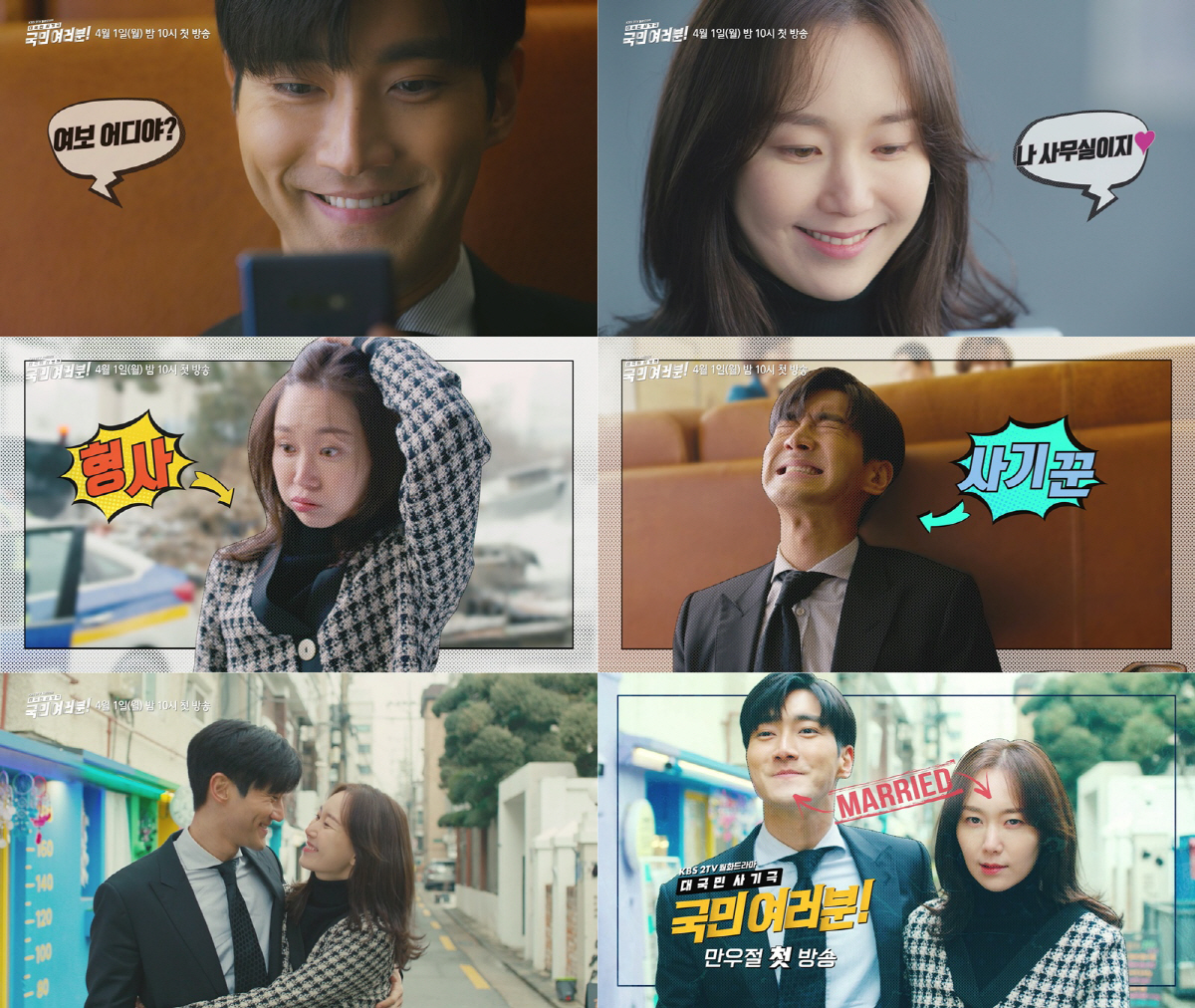[스포츠조선닷컴 이지현 기자] '국민 여러분'이 첫 번째 티저 영상을 공개, KBS 2TV의 새로운 월화드라마가 베일을 벗었다. 사기꾼 최시원과 형사 이유영이 어쩌다 부부가 됐는지 호기심을 자극한다.