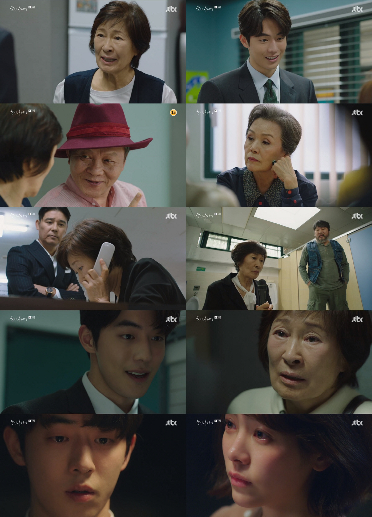 25일 방송된 JTBC 월화드라마 '눈이 부시게'(이남규 김수진 극본, 김석윤 연출) 5회에서는 기자가 아닌, 노인 홍보관의 팀장이 된 이준하(남주혁)를 보고 충격을 받는 김혜자(김혜자)의 모습이 그려졌다. 이준하는 기자 마이크가 아닌 노래방 마이크를 쥐고 능청스럽게 노래를 불렀고, 노인들을 상대로 약을 팔며 청춘도 함께 팔았다.