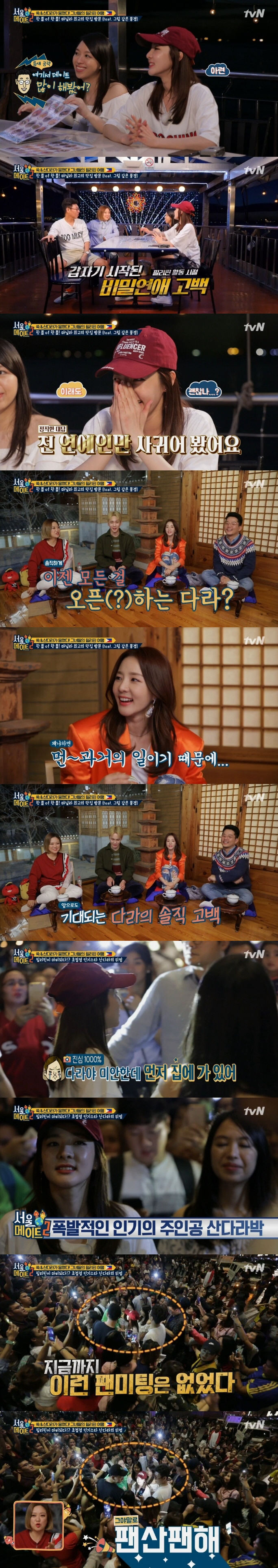 산다라박의 쿨함은 이뿐만이 아니었다. 맛있는 저녁식사를 끝낸 '서울메이트' 멤버들과 쌍둥이 자매는 마닐라에서 가장 인기 있는 축제인 불빛 축제를 구경하기로 한 것. 다들 필리핀 슈퍼스타 산다라박을 걱정했지만 정작 산다라박은 "몇 년 전에도 가봤는데 아무도 못 알아본다. 다들 축제를 보느라 내가 온 줄 모른다"며 털털한 모습을 보였다.
