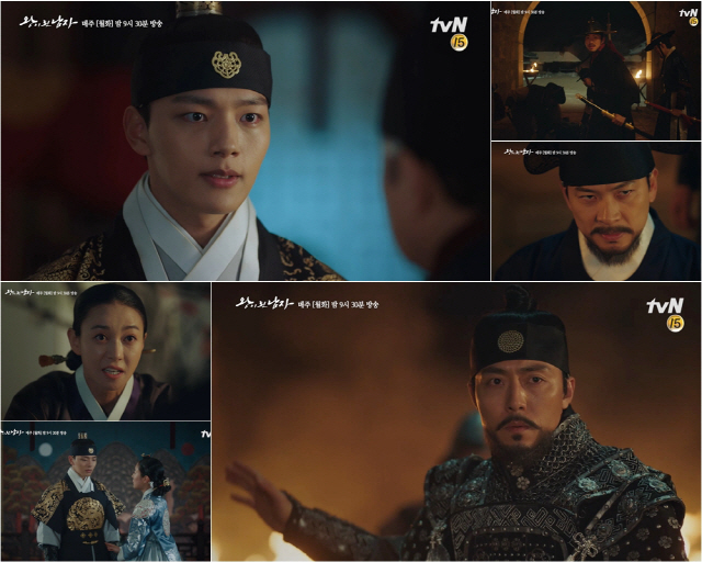 이 가운데 공개된 예고 영상은 국난이 일어난 조선의 모습을 조명해 긴장감을 수직 상승시킨다. 서궁으로 쫓겨난 대비는 신치수에게 "옥쇄와 함께 그 가짜 놈의 머리를 내게 가져오게"라고 명령하며 독기를 뿜어내고, 임금의 호위무사 장무영(윤종석 분)은 코 앞까지 들이닥친 반란군의 횃불을 긴장 어린 눈빛으로 바라보고 있어 손에 땀을 쥐게 만든다.